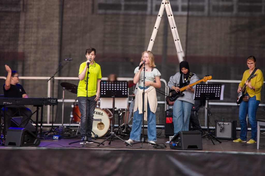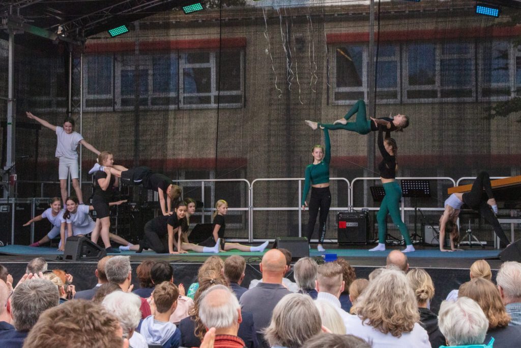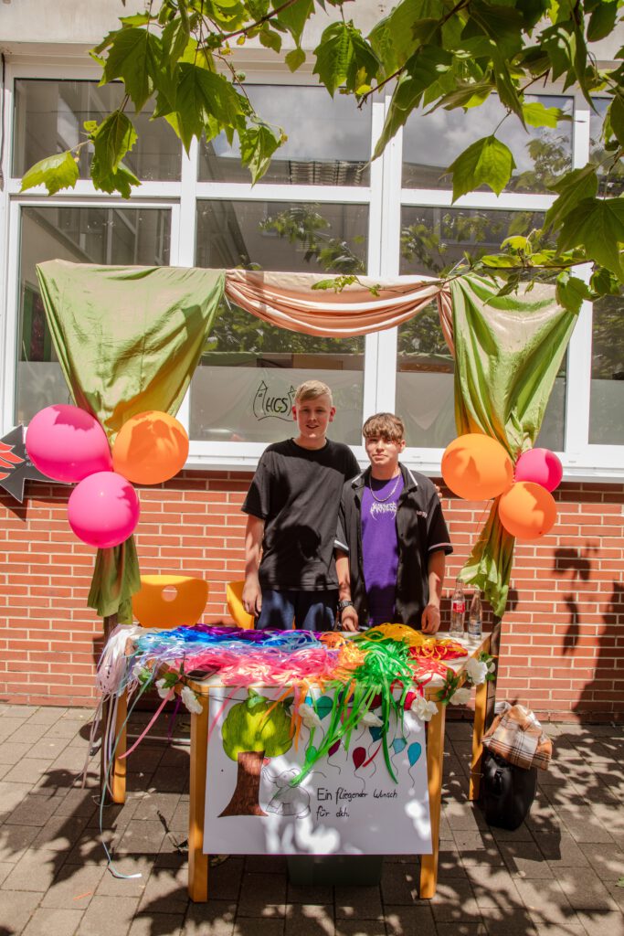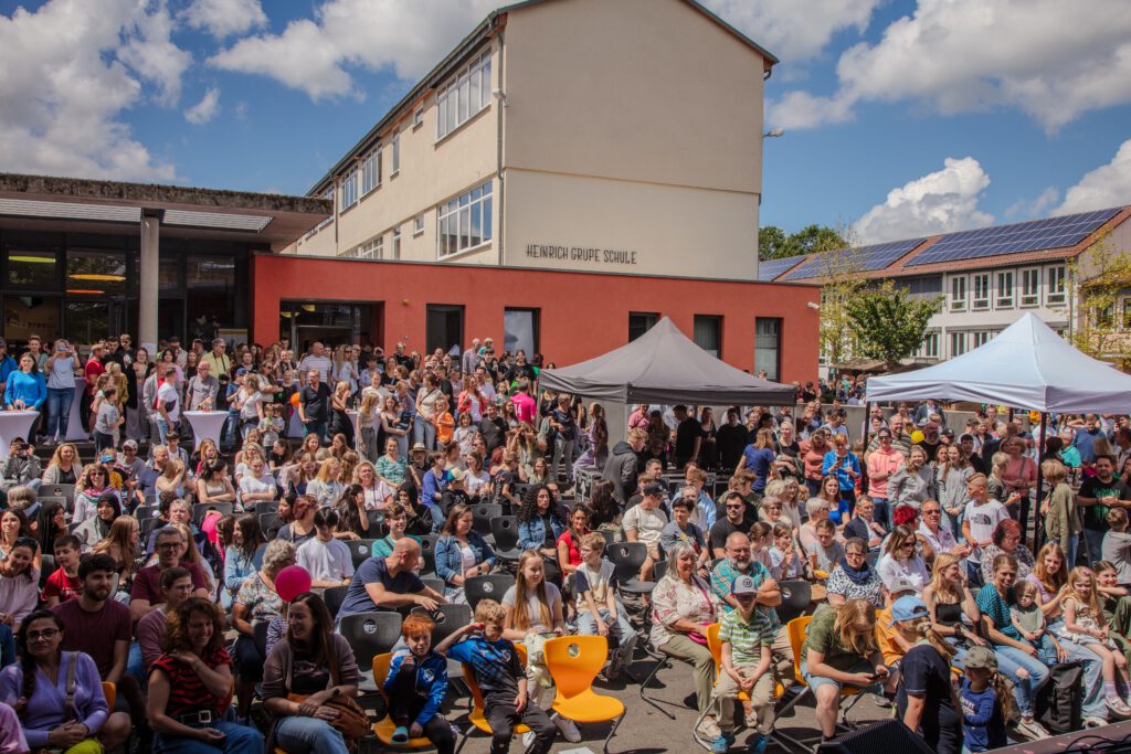 Nach der offiziellen Eröffnung mit regionaler und administrativer Prominenz könnte um 12.30 Uhr das Schulfest endlich beginnen. 37 Aktionen warteten auf die Gäste. Viele Eltern, Großeltern, ehemalige Schülerinnen und Schüler und Lehrerinnen und Lehrer waren gekommen und ließen sich auf der „Fress-Meile“ vor dem Förderstufengebäude die angebotenen Leckereien schmecken. Der Candy- und Donat-Shop wurden umlagert, die Kartoffelwaffeln schmeckten köstlich und die alkoholfreien Cocktails hatten ihren ganz besonderen Reiz. Die Jüngsten der Schule boten gekonnt ihre 600 hergestellten Lose an oder unterhielten gemeinsam mit den 8-Klässlern in der Kinderwelt die vielen Geschwister, die gekommen waren. Höhepunkte für die Schülerinnen und Schüler als auch die Eltern waren die Aufritte auf den unterschiedlichen Bühnen der Schule. Dazu gehörten u.a. der wunderbare Chor der 5.und 6.Klässler, die sechs großartigen Tanzaufführungen, das detailliert vorbereitete Projekt „Nature Moves“, eine Balladeninszenierung der Klasse G7a, der Auftritt der Theater-AG und die Rocksongs der HGS-Schulband…
