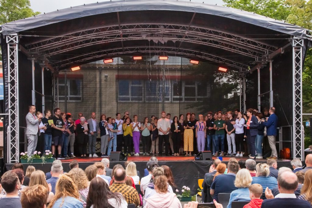 Und dann gab es da noch das Wetter! Denn alles war eigentlich für draußen geplant worden. So stellte sich die Planungsgruppe um Martina Boye-Griesel, Robin Göring und Anna Fechner das Jubiläum vor. Ein Fest im Freien.