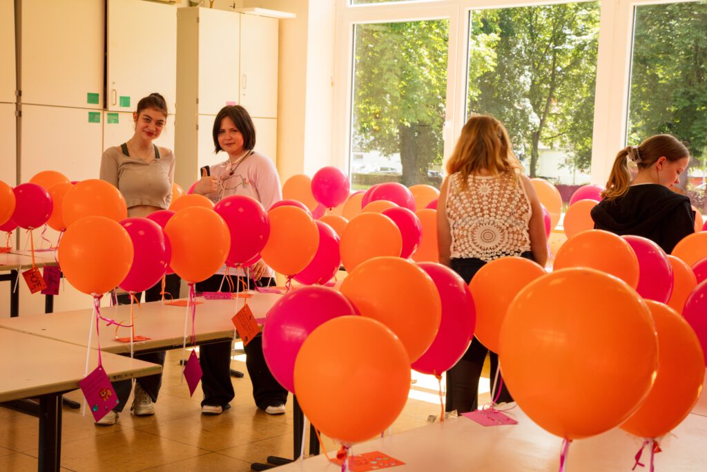 Eine Woche vor dem großen Ereignis lag eine flirrende Unruhe über der HGS. Es wurde nach dem Pfingstwochenende an vier Projekt-Tagen gewerkelt, gebastelt, gemalt, gekocht… Immer wieder mussten viele Schülerinnen und Schüler ihre Arbeit am Klassenprojekt unterbrechen, um an den regelmäßigen Proben für die Chordarbietungen, die Tanz- und Theateraufführungen, die Reden und vieles mehr teilzunehmen. Der große Auftritt am Tag des Schuljubiläums musste gut vorbereitet werden, denn schließlich war es kein normales Schulfest. Nein, 50 Jahre sollten gefeiert werden und das aber richtig!!!